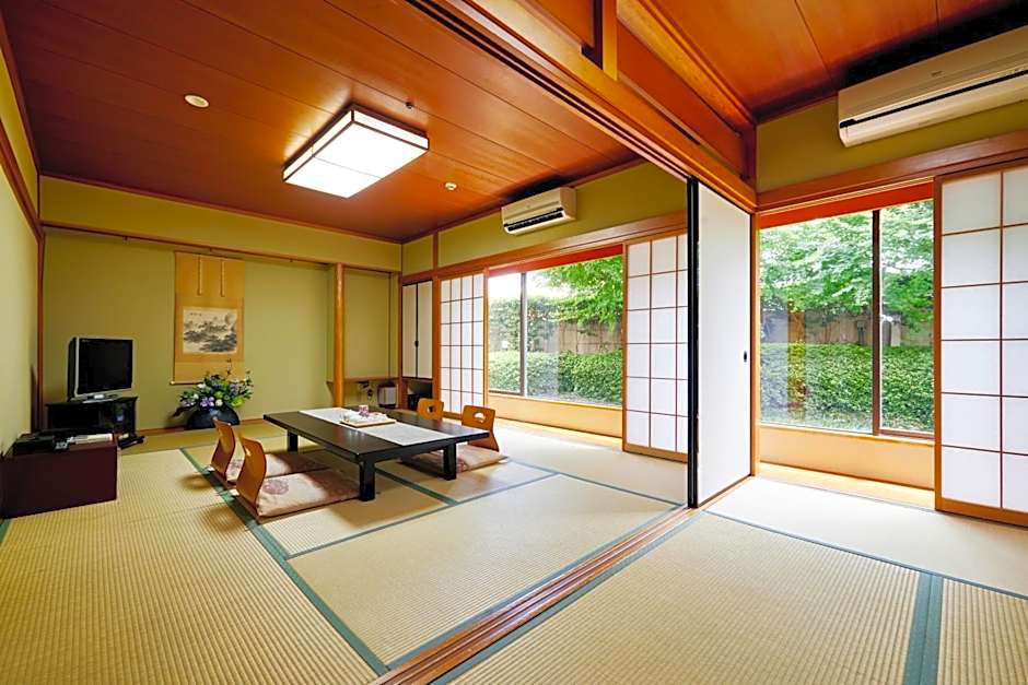 The quadruple room includes a private bathroom, well-fitted with a bath, a shower, a bidet, a hairdryer and slippers. The air-conditioned quadruple room offers a flat-screen TV with cable channels, tatami, soundproof walls, a tea and coffee maker as well as an inner courtyard view. The unit has 4 futons.